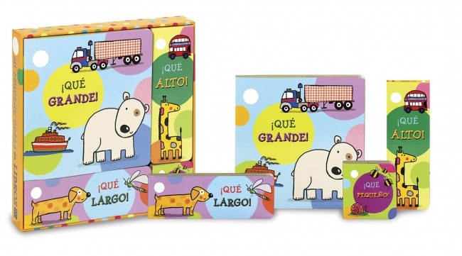 Este divertido cofre de libros te ayudará a ver mejor todo lo que te rodea: los grandes camiones, los pequeñitos caracoles y otras muchas cosas enormes, diminutas, largas, altas... ¡Cuatro libros de primeros conceptos para los más menudos de casa!