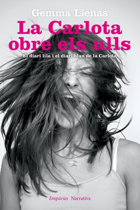 La Carlota obre els ulls reuneix dos textos ja publicats anteriorment: El diari lila de la Carlota i El diari blau de la Carlota. De tots els diaris de la Carlota publicats fins ara, aquest dos tenen una estreta relació. El diari lila explica les desigualats encara existents a la nostra societat entre dones i homes i de quina manera es pot lluitar per esborrar-les. El diari blau gira entorn dels mecanismes de la violència, tant pel que fa a violència a les aules, com a la violència dins de la família, com, sobretot, a la violència de gènere. La Carlota obre els ulls conté una introducció en la qual l'autora explica com va sorgir la idea d'escriure cadascun dels dos diaris.