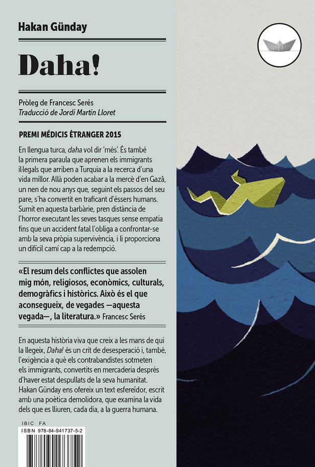 En aquesta història viva que creix a les mans de qui la llegeix, Daha! és un crit de desesperació i, també, l?exigència a què els contrabandistes sotmeten els immigrants, convertits en mercaderia després d?haver estat despullats de la seva humanitat. Hakan Günday ens ofereix un text esfereïdor, escrit amb una poètica demolidora, que examina la vida dels que es lliuren, cada dia, a la guerra humana.