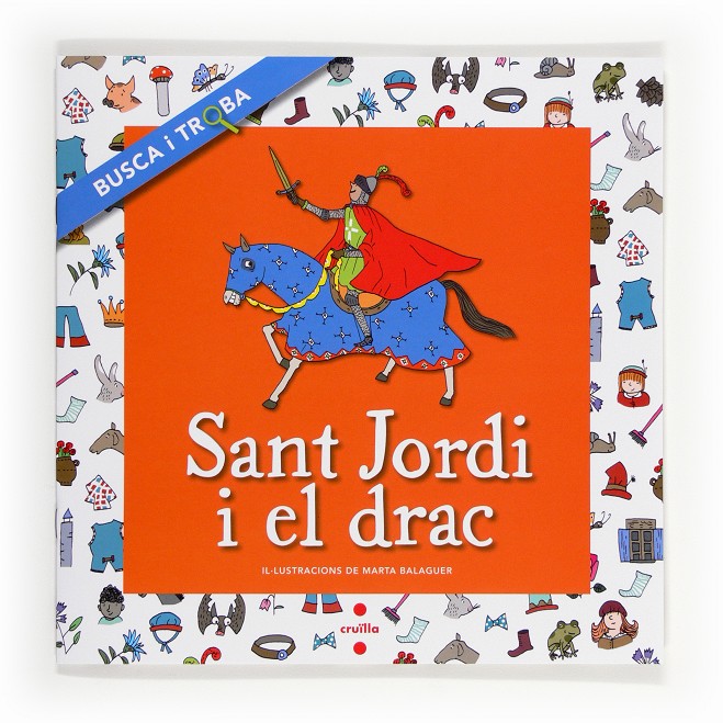 Un Sant Jordi per ajudar a treballar la concentració i l'atenció: sis dels elements que apareixen a les il·lustracions de cada pàgina s'han de reconèixer i buscar. Busca i Troba: Una col·leció de llegendes, històries i contes, amb objectes per descobrir a cada pàgina