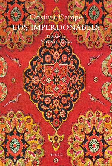 Imperdonable, Cristina Campo, como Hugo von Hofmannsthal, Marianne Moore o Gottfried Benn, porque su pasión es la perfección: «La pasión por la perfección llega tarde. O, mejor dicho, se manifiesta tarde como pasión consciente». Estas son las primeras frases del texto «Los imperdonables» que da título a este libro, en el que fueron reunidos sus escritos sobre las fábulas, sobre autores en los que ella se reconoce y cuya lectura llega hasta el fondo mismo de su ser para mostrarlos sin máscaras, en su más absoluta desnudez, como le confesó intimidado William Carlos Williams.