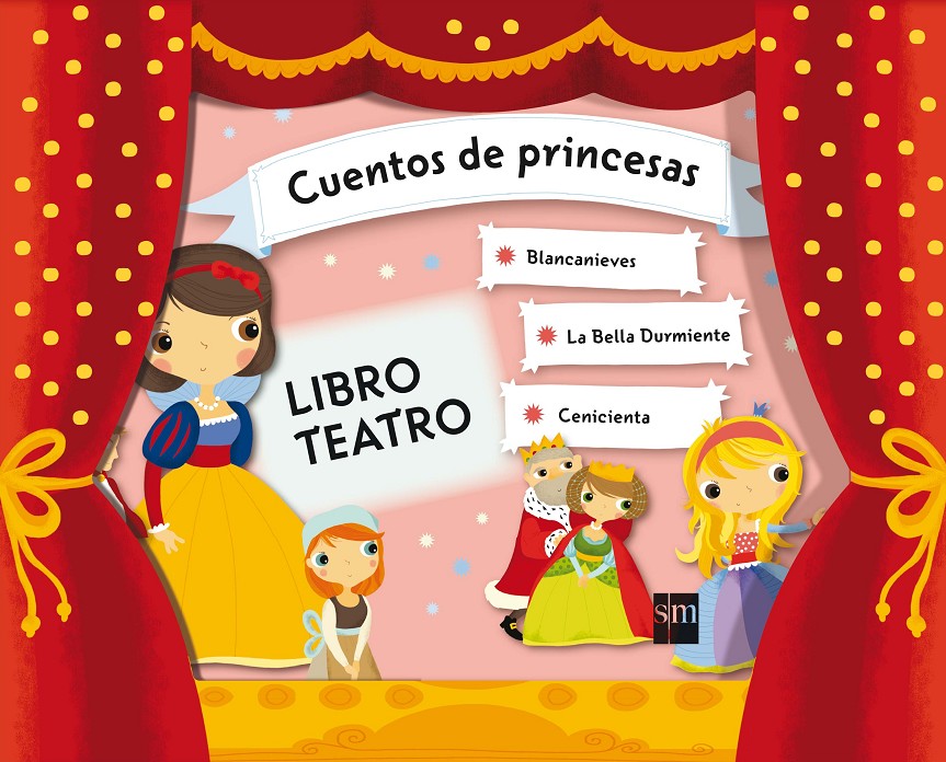 Este pack contiene un libro, 5 decorados y 16 personajes de cuento.En el libro de 22 páginas encontrarás tres cuentos de princesas: Blancanieves, Cenicienta y La Bella Durmiente. Al final de cada cuento hay un breve argumento de este para que el niño lo pueda representar como una obra de teatro. Además, el pack incluye un sencillo teatro con 5 decorados y los 16 personajes de estos cuentos para que el niño juegue con ellos.