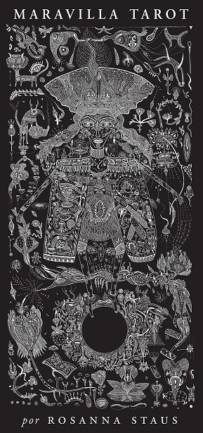 Mucho antes de que las cartas del Tarot sirviesen para despertar fuerzas ocultas, los mazos se entendían, sencillamente, como obras de arte para disfrutar durante el juego. La artista alemana Rosana Staus recupera esta simbología original en Maravilla Tarot, una obra gráficamente deslumbrante, donde el arte y la poesía se entrelazan para reimaginar y resignificar el sentido de las cartas de este popular juego nacido en el siglo xiv. Staus utiliza la técnica del grabado, de finas líneas negras sobre blanco,