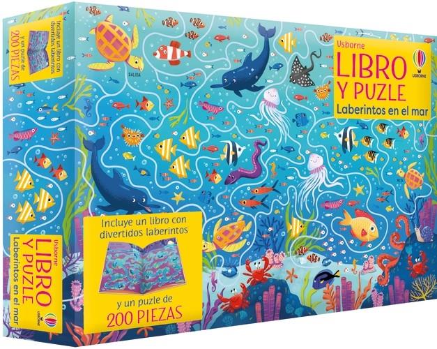Caja regalo que contiene un puzle de 200 piezas y un fascinante libro a juego con escenas del fondo del mar. Una vez montado, el puzle se convierte en un laberinto en el que los niños deberán encontrar la salida entre peces de colores, ballenas, tortugas, tiburones y todo tipo de fascinantes criaturas submarinas. El libro de 32 páginas contiene muchos más laberintos por resolver.