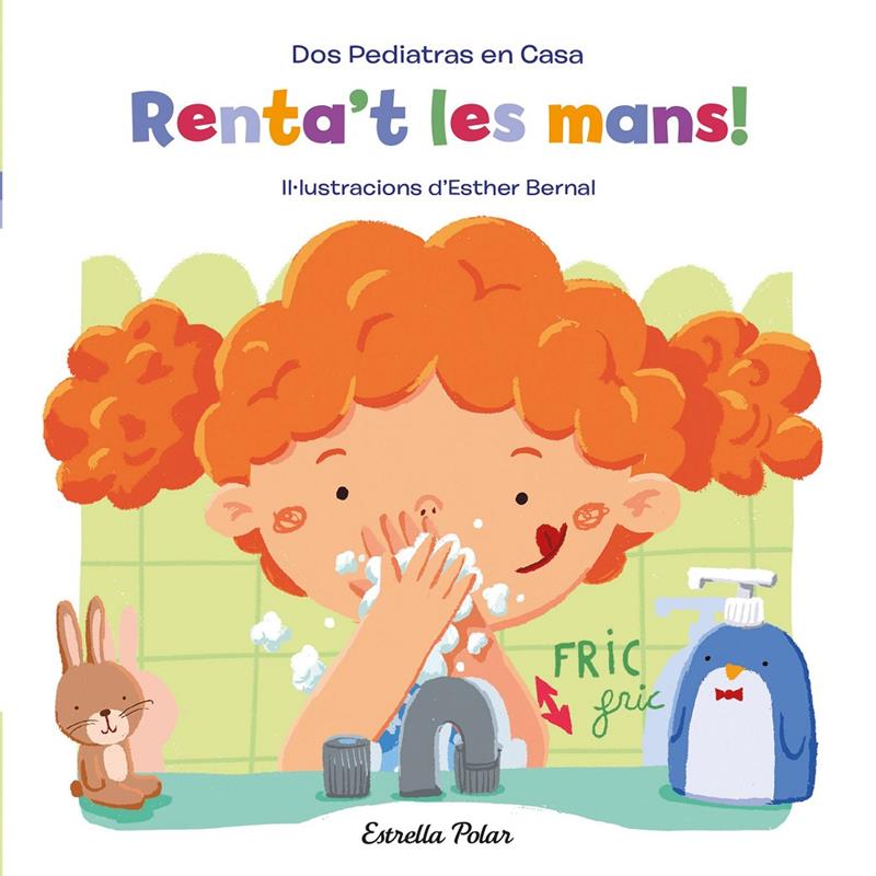 Un conte de cartró amb text rimat que il·lustra pas a pas el rentat correcte de mans escrit per Elena Blanco i Gonzalo Oñoro, Dos Pediatres a Casa, i il·lustrat per Esther Bernal.