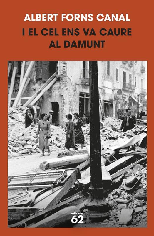 I el cel ens va caure al damunt és la reconstrucció d’aquells seixanta segons fatídics a través dels seus protagonistes, els testimonis d’aquell dia que encara sobreviuen i que s’han pogut salvar de l’oblit. Albert Forns novel·la amb un estil que captiva una vintena d’aquestes vides colpejades pel bombardeig. Un viatge al 1938 que no només homenatja i humanitza les víctimes, sinó que retrata els anhels d’un país i de la seva gent abans que la calamitat els caigués al damunt.