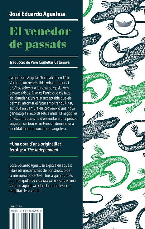 "La guerra d’Angola s’ha acabat i en Félix Ventura, un negre albí, troba un negociprofitós adreçat a la nova burgesia: ven passats falsos. Això és l’únic que els faltaals ciutadans, un relat acceptable que els permeti afrontar el futur amb tranquil·litat,així que en Ventura els proveeix d’una nova g...